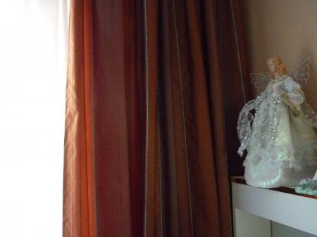 -10 aujourd,hui et du soleil! C,est un livre,que je lis,Nous avons parle deja d,Anna Gavalda avec Dely.Tres agreable a la lire. Ces rideaux,couvre-lit et linge de lit j.ai achete avant des fetes.Ce mariage de couleurs me plait.Et a vos gouts? Bon WE!