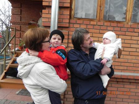 Nous tous sommes lies 25 annees deja. Nous, Genja et moi,nous sommes les plus ages et seulement nous avons un petit fils. Et le voila aujourd,hui matin!