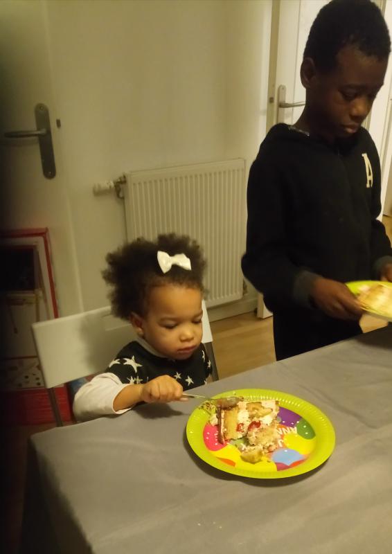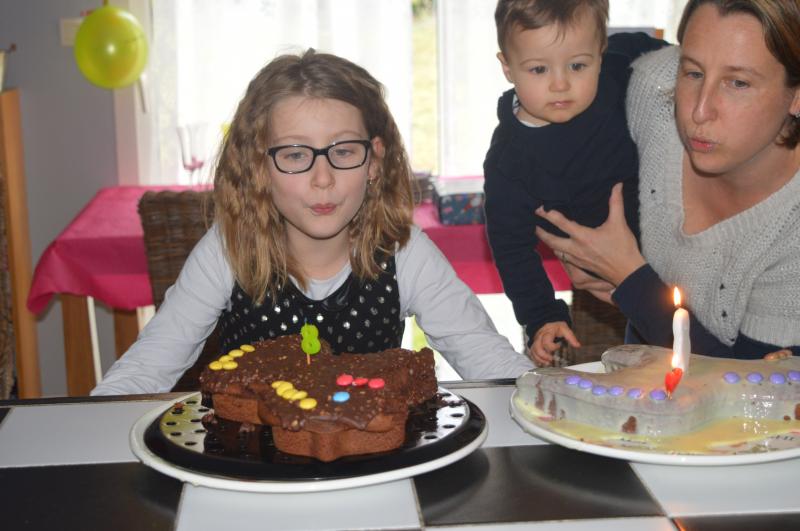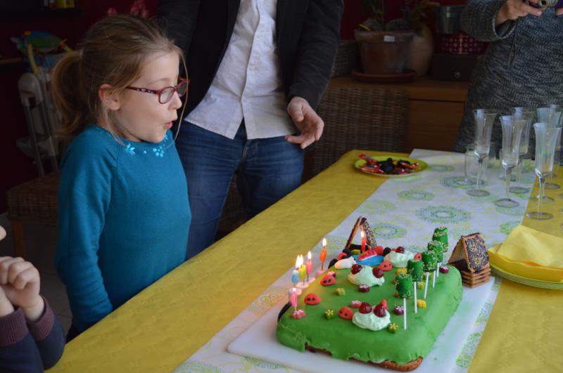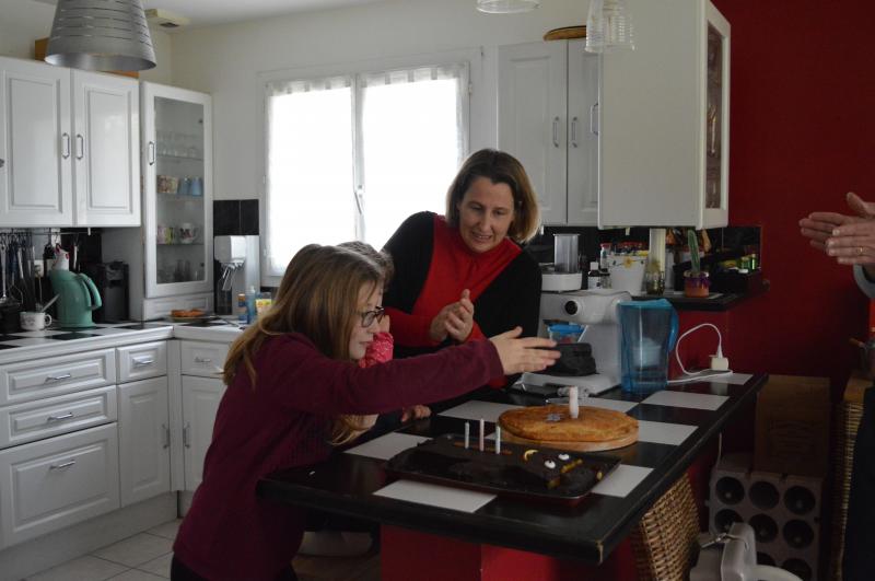 pour l occasion, nous étions invités à l aider à souffler ses bougies après les contrôles sanitaires testés positifs (sauf pour son parrain qui a dû faire une visio!!!!) à la demande de l interessée, ma fille avait donc préparé les gâteaux : des gâteaux basques l un à la crème et l autre à la confiture de cerises