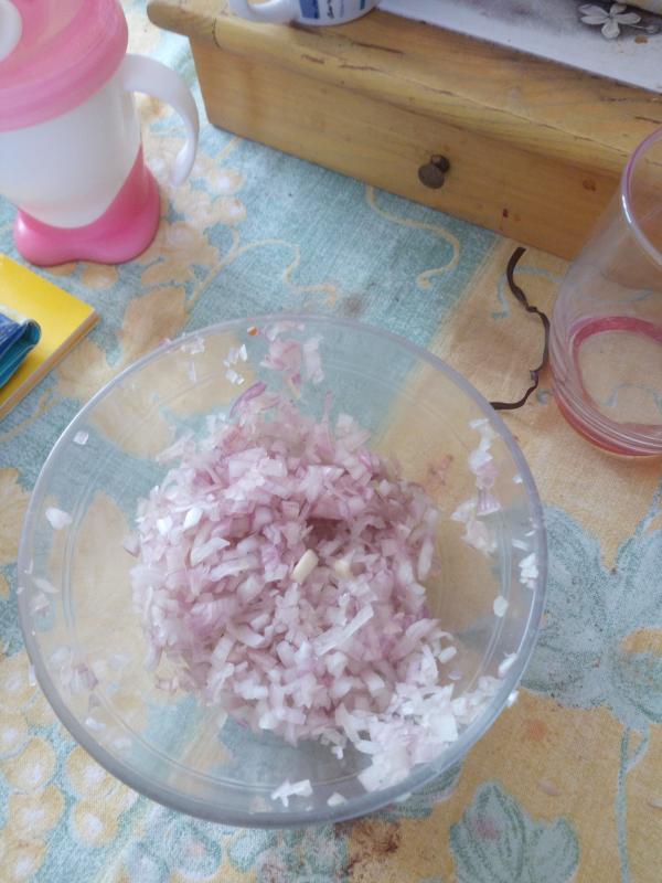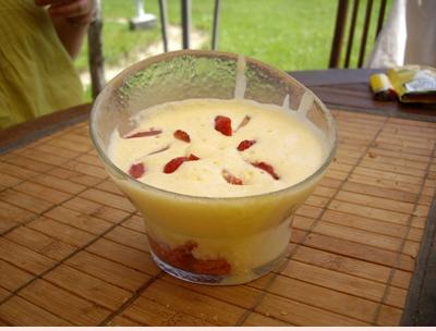 pour ne pas faire de jaloux, la fête des mères était organisée chez moi avec les enfants - Aurore, ma fille était arrivé le samedi après midi pour m aider à tout préparer et surtout me faire le dessert : une tarte aux fraises - nous avions préparé un menu tout simple afin d éviter de passer trop de temps en cuisine - à l apéritif : de la saucisse sèche en rondelles, des olives (achetées chez LDL en bocal assaisonnées) des chips de banane plantin, des fèves à la croque sel, et des arachides - sans oublier le "daiquiri" -