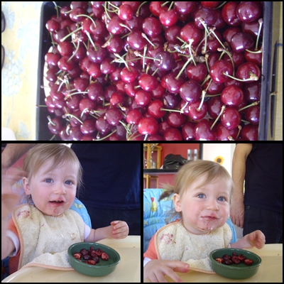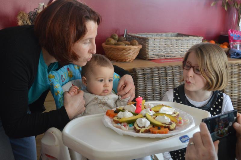 Mila était toute fière de pouvoir participer à la fête à table comme les grands grâce à la chaise haute sortie du grenier et bien décapée par papy