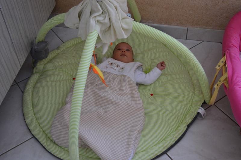 comme notre présence n a pas semblé la déranger plus que cela, nous avons passé l après midi et du coup nous avons pu assiter au bain (je peux vous l assurer c est bien une fille mais les photos osées seront pour plus tard et sous sa responsabilité!!!!!!!!!!!!!!!!!!!!!!!!!!!!!!!!!!!!!!!!) pendant ce temps "papy" a trouvé un peu d occupation : le montage et l installation d un petit mobile musical qu elle avait reçu en cadeau