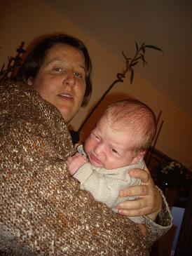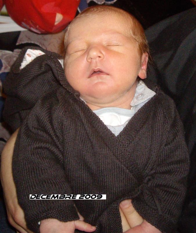 la voici le 18 décembre : elle avait 15 jours puis le 28 décembre lors de la visite de sa tante, alors plus contagieuse, venue lui remettre son cadeau de Noël