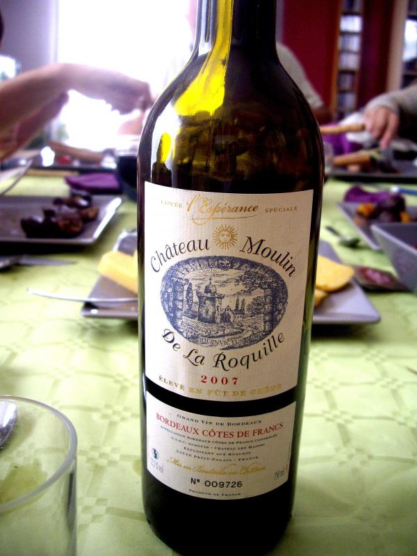 - un tarriquet pour l entrée - un double magnum de Médoc de chez mon oncle "chateau colombe peylande/cussac 1999" pour la viande et le fromage - un champagne offert par les parents de Nicolas