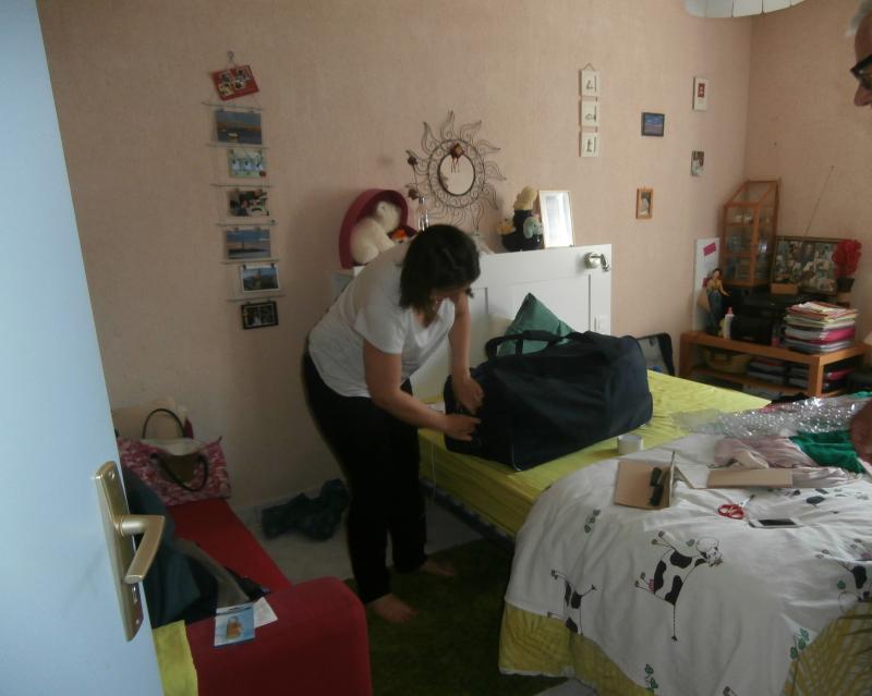 hier donc nous avions rendez vous à Libourne chez ma fille pour le déménagement - tout d abord nous faisons 2 équipes : les travailleurs c est à dire tous les hommes et les nettoyeuses/baby-sitter c est à dire les femmes - car en premier nous devions aller à la nouvelle maison pour installer le chat et nettoyer les pièces repeintes par mon mari, mon gendre et un de ses copains dans la semaine - donc nous voilà parties à 2 voitures chargées de petits cartons des choses fragiles, le chat et son équipement ainsi que Mila