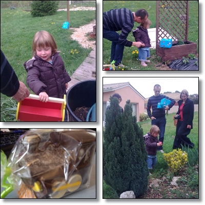 bon très occupée et aussi très émue je n ai pas trop eu l occasion d avoir mon appareil photo pour immortaliser la chasse aux oeufs très intense et très rapide en raison de la chaleur du soleil!!!!!!!!!!!!!! voilà tout de même la récolte a été très fructueuse pour les petites et même la grande