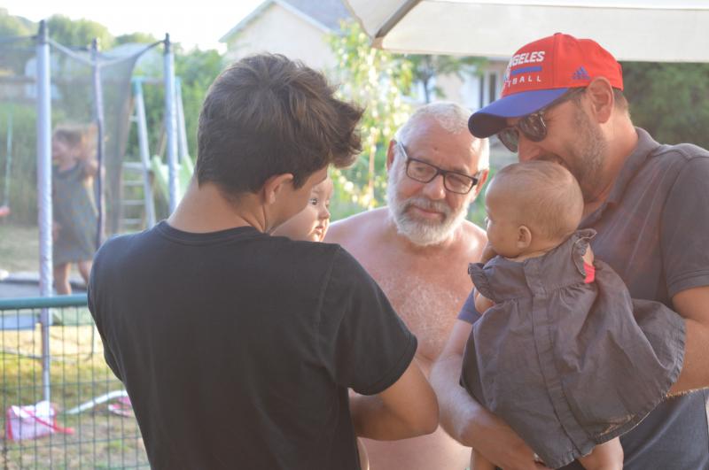 le vendredi soir nous avons reçu toute notre famille parisienne autour d un barbecue et afin de se retrouver ensemble, chose qui n était pas arrivée depuis presque 4 ans - nous étions tout de même 27 et il en manquait encore 6 qui n avaient pas pu venir à cette soirée. Tous réunis autour de ma belle mère qui, a 87 ans, avait fait le voyage pour le mariage de sa petite fille - nous avons passé une excellente soirée prémice d un mariage très réussi