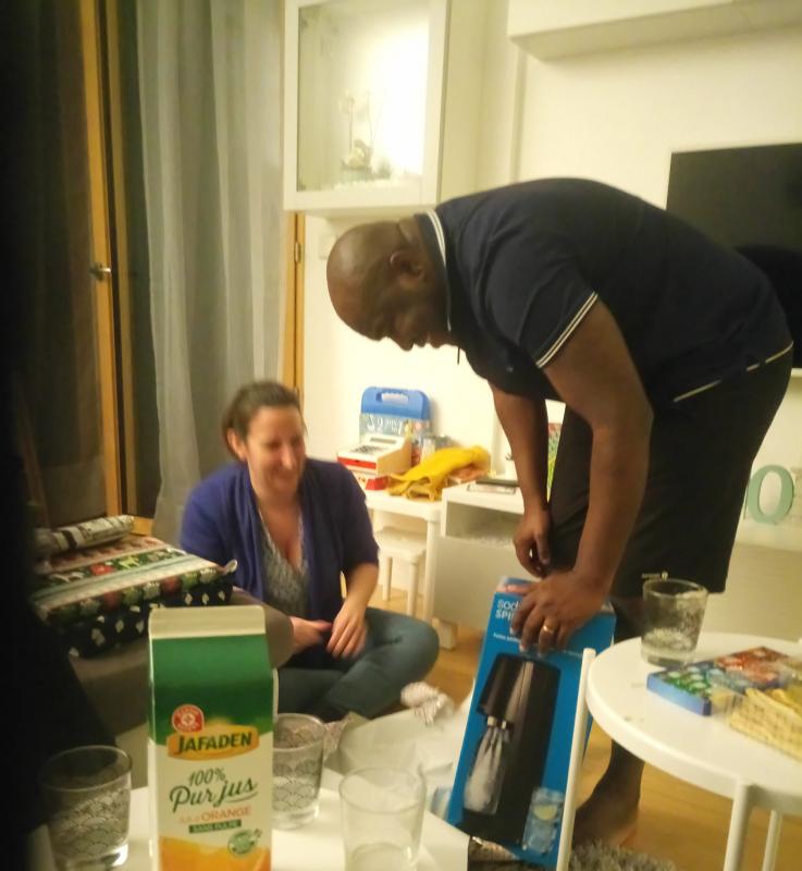 nous avions tenté de lui faire une blague : nous n avions emballé que le tuyau de gaz (car le reste était trop volumineux) et nous avons commencé donc par le petit cadeau ..... la farce a vite été éventée tout de même - mais il était un peu inquiet car le gros paquet était resté dans la voiture