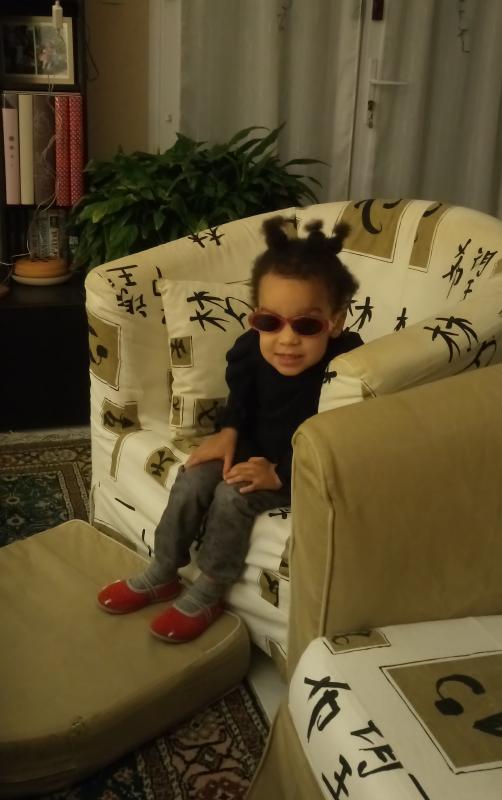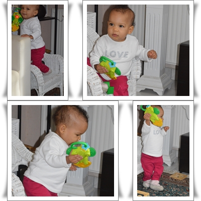 un petit tour dans sa chaise-transat pour rejouer un petit peu et digérer avant de retourner faire une petite sieste en attendant le retour des parents - bref une après midi toute en douceur et pleine de sourires et de tendresse (cela ne l a pas perturbée plus que cela de nous avoir comme "nounou") et nous cela nous a rajeuni un tout petit peu !!!!