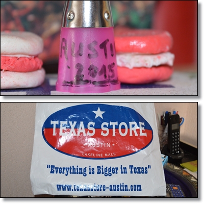 dans chaque verre nous avions une petite goutte garnie de dragées ivoire et violine pour rappeler que c etait un baptème
