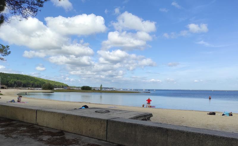 nous voilà sur la plage de Carcans, la marée était basse donc la mer très calme et un peu loin