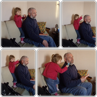 moi avec ma petite fille à caliner !!! et papy a joué avec son petit fils au bowling sur la WII