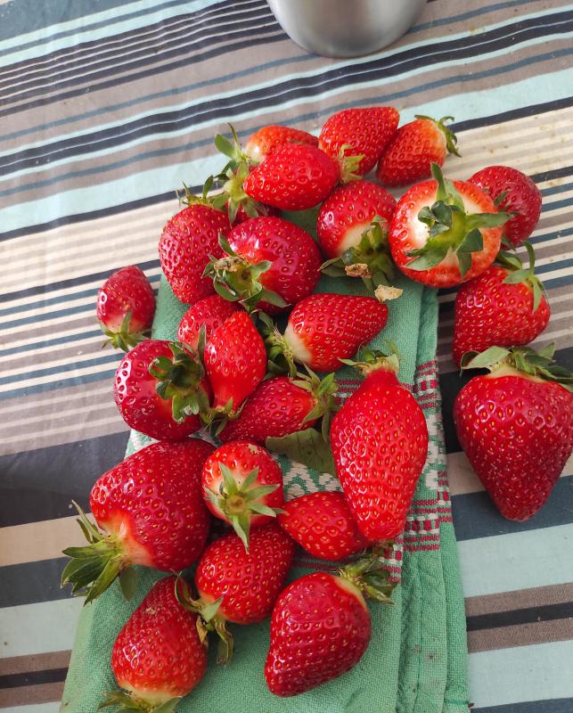 On les attend pour manger donc je suis allée chercher quelques fraises pour le dessert