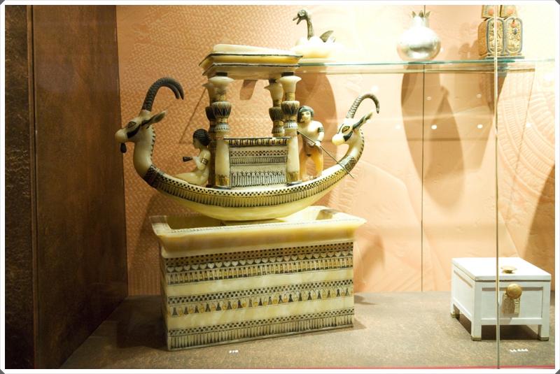 quatre vases canopés, le couvercle et le corps des 4 cercueils mignatures conçus pour accueillir les organes du roi sont chacun constitués de 2 boîtiers en or laminé collés l'un à l'autre