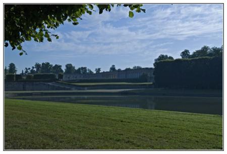 Me voila arrivée à la pièce d' Eau des Suisses. Creusé pour embellir l'axe nord-sud des jardins, dont l'Orangerie dont il est séparé par la route de Saint-Cyr, théâtre de fêtes nautiques sous l'Ancien Régime, ce grand bassin remplace une zone marécageuse appelée "étant puant" qui causait de nombreuses maladies parmi les habitants de Versailles.