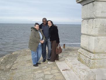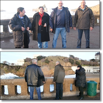 pour aller fleurir le cimetière tout d abord nous avons mangé un sandwich sur les quais à Pauillac mais le vent était glacial (on se protège un peu car n avions pas prévu un tel froid)