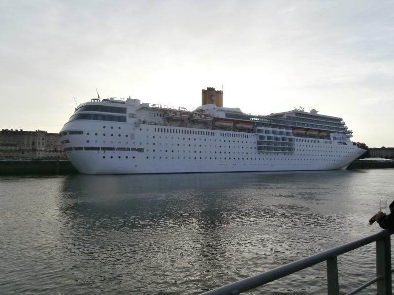 je vous avais dit qu à Pauillac arrivaient par voie maritime les éléments de l A380 - et hier justement un des 2 bateaux était amarré à Trompeloup alors nous en avons profité pour y aller mais la manoeuvre de transbordement sur la barge qui va jusqu à Langon était finie - comme la marée était basse on n a pas pu voir la barge qui est juste derrière le bateau (celui-ci était le "Ville de Bordeaux" )