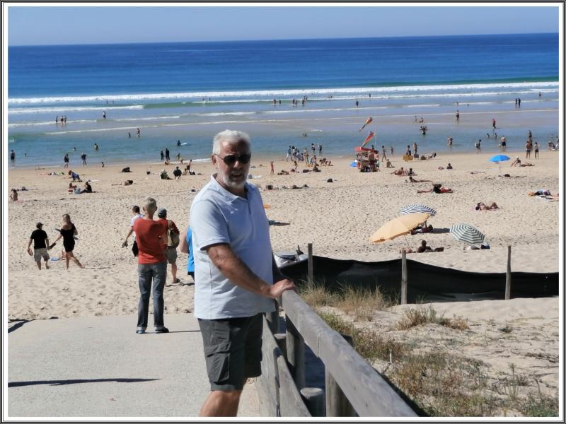 bien sûr nous sommes allés dire bonjour à l OCEAN où il faisait encore beau et quelques surfeurs et baigneurs en profitait il faut dire que l eau était encore très agréable (22 deg. d après le tableau des MNS encore présents sur place)