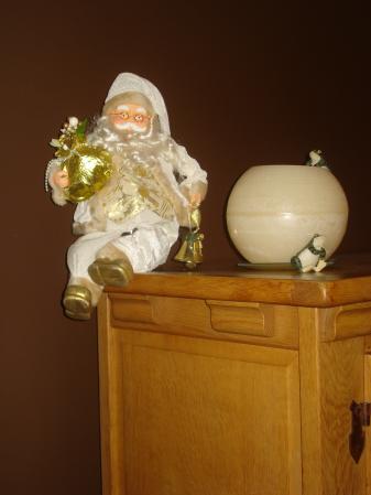 Nous n avons trop envie de faire notre sapin cette année mais tout de même une petite déco.....j ai sorti ma petite collection de père noel et je les ai disposé par ci par la!!