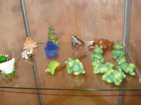 et bien oui je collectionne les grenouilles............un peu difficile a gèrer ai du me calmer car mon pauvre homme n'en voulait pas partout dans la maison...........d'ou me suis limitée a 1 vitrine...........
