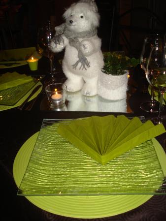 nous avons reçu ce week end et voici ma nouvelle idée table je suis fort dans le noir et une autre couleur en ce moment après le rose voici le vert............quand pensez vous............