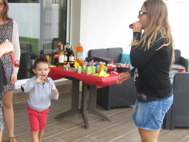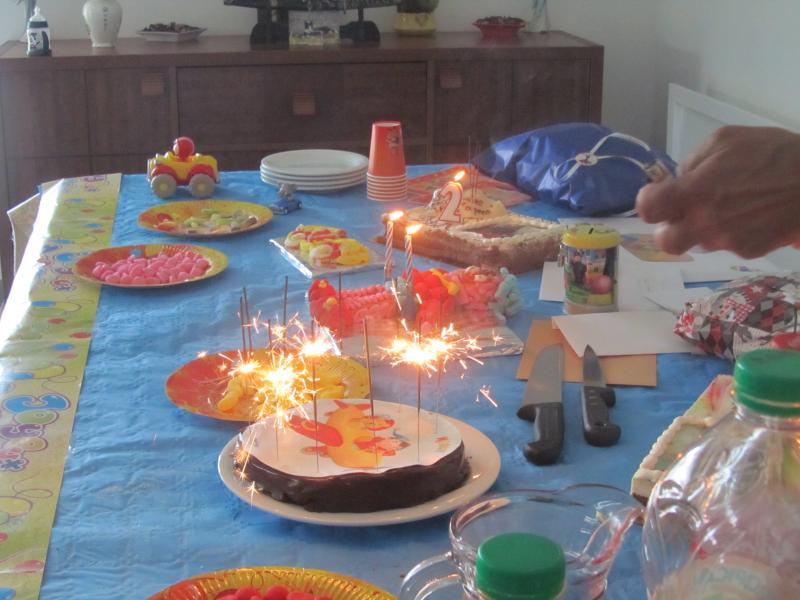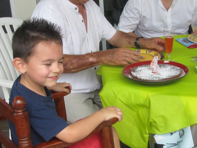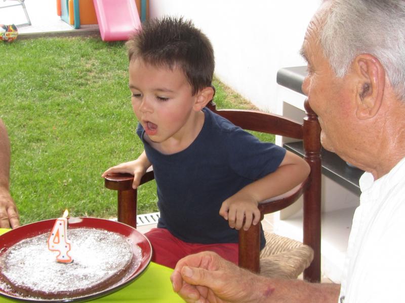 notre petit bout Théo qui aide sa mamie a souffler les bougies.