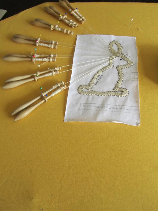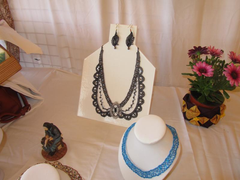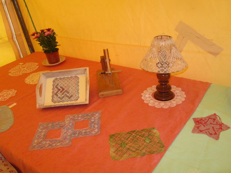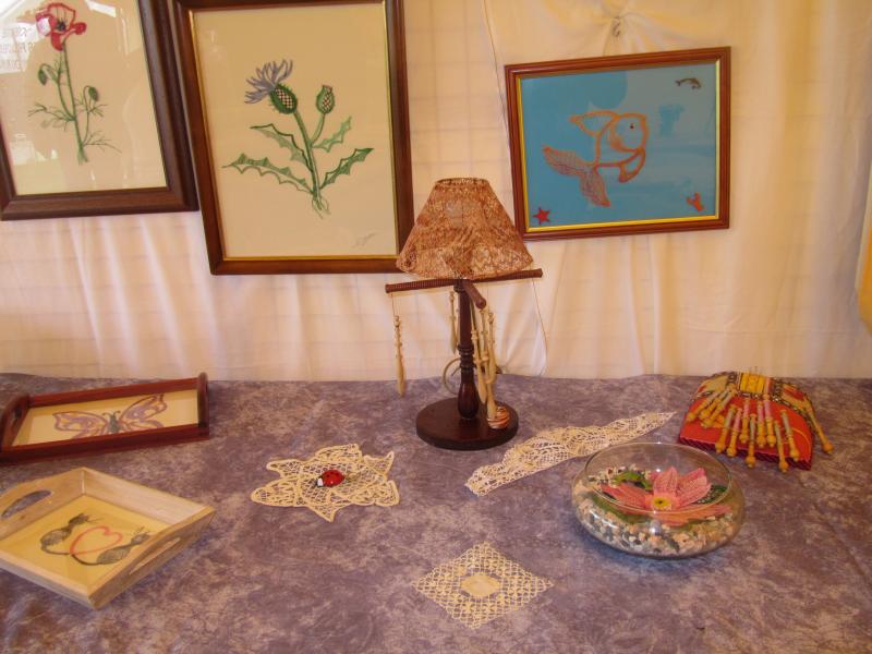 nous avons eût notre expo de dentelle aux fuseaux avec la fête des grands livres