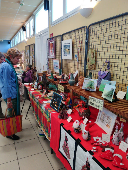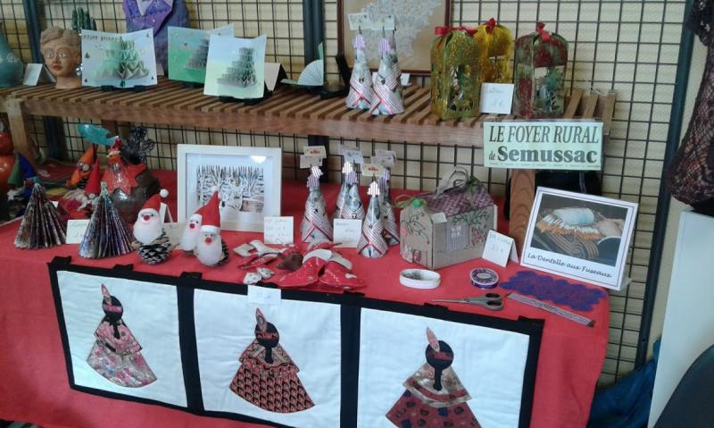 le 27 novembre,nous avonseut le marché de noel organisé par les parents d'éleves de Semussac.c'etait le premier ,il y avait beaucoup d'exposants et de choses intéressantes.nous avions un stand pas trés fournis (fautede participant notre club veilli et nous etions moins nombreuses)quelques petites ventes.