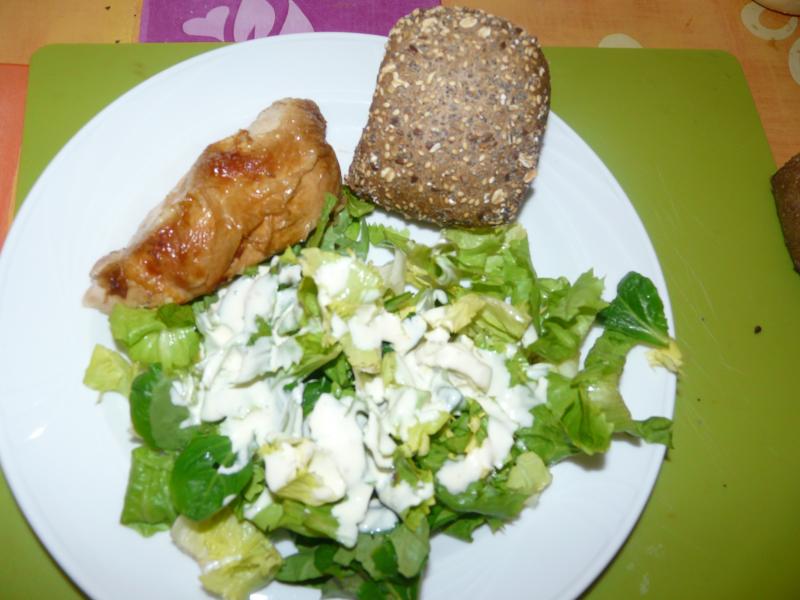 Voici encore une belle petit journée qui s'achève ....on a ut un beau soleil ! Et en plus comme chaque mercredi j'ai mon petit rayon de soleil....je parle bien sur de Lukas ! Voiçi une bonne assiètte composée de salade blanc de poulet et un petit pain Pour un repas de midi quoi demander de plus!! Bises lisette |