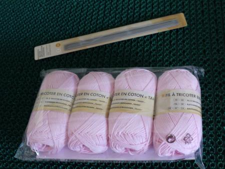 "je n'achete plus de laine avant que tout soit tricoté" hi hi ai je dis bien fort et forcément en allant faire mes courses au LIDL du coin, pfff de la laine à prix intéressant et en plus y avait du rose ce n'est pas de la laine en vérité mais du fil à tricoter en coton, forcément n'étant pas sure d'avoir les aiguilles à la taille par dessus tout ça j'ai racheté un lot