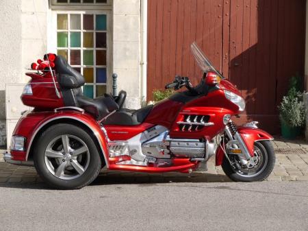 Sur le forum des poupées, un concours est organisé et plus ou moins à l'affut de "LA" photo, que j'ai faite d'ailleurs à Bayeux mais ca aussi fera l'objet d'une autre entrée, et la dans ce village une belle bête !! une moto rouge à 3 roues allez à la découverte de ce montre et de ses hotes bien arrimés |
