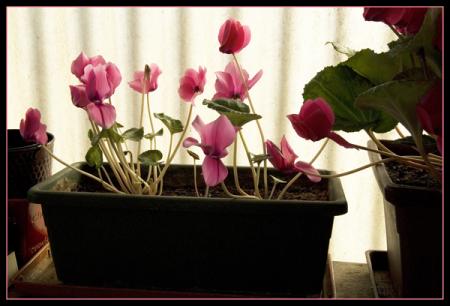Ces cyclamens restent dehors en permanence, sauf par température négative ou ils sont rentrés le soir.