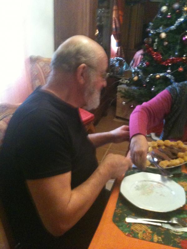là nous avons christophe au barbecue "on ne rigole pas!! ils ont maintenant eu aussi des enfants dont théo qui a l'age de mon premier petit enfant!!