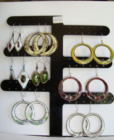 De toutes les couleurs Boucles d'oreilles et penentifs, rouge et orangé Ensemble . Tréfle a 4 feuille en paillon d'or.