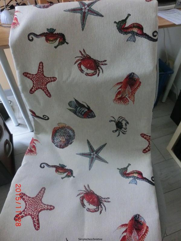 Un tissu d'ameublement que j'ai trouvé dans un magasin en  Charente Maritime, les fauteuils sont destinés dans notre maison en Charente Maritime.