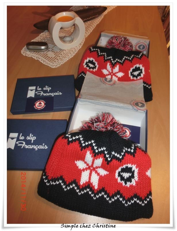 Les bonnets sont arrivés, il y a quelques jours, de bons bonnets bien chauds, dans de jolies boîtes, avec la particuliratié d'être fabriqués en France.