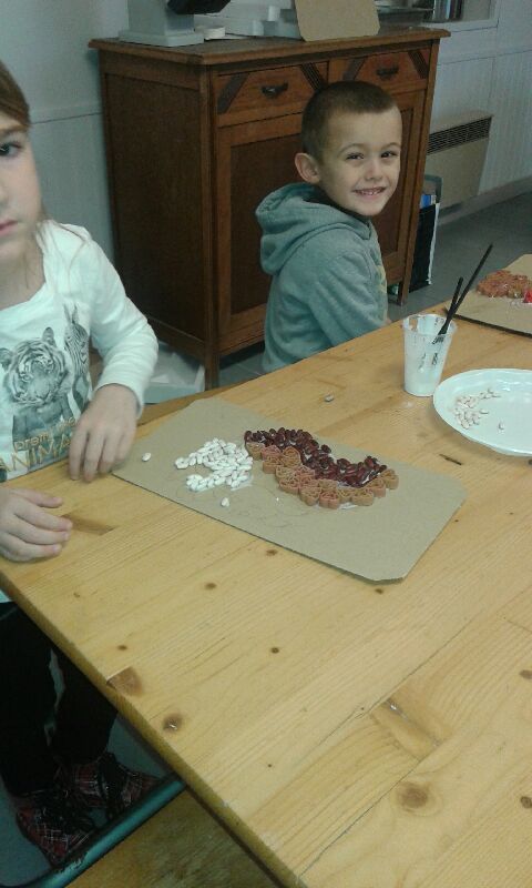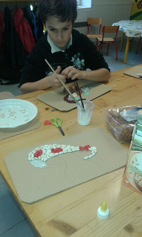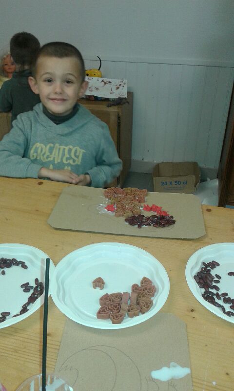 Sur un support cartonné dessiner un écureuil, un arbre....... décorer avec des pates de couleurs,des haricots, papiers crépons..... et de la colle.