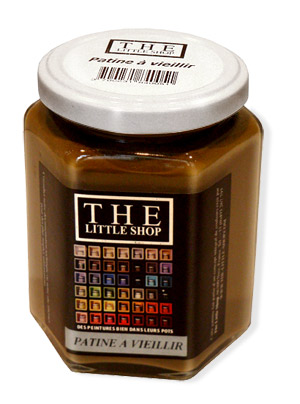 La patine à vieillir à l'ancienne (ou patine acrylique): Le principe de cette patine à base d'eau (assez liquide existant en plusieur teintes) est d'offrir une solution rapide et simple pour obtenir le vieillissement prématuré d’un meuble ou d'un objet. Cette technique produit des ombres subtiles en demi-teinte, mettant ainsi en valeur la structure et le modelé de l'objet ou encore la moulure d'un meuble. Elle adoucit la texture et la couleur de la peinture.
