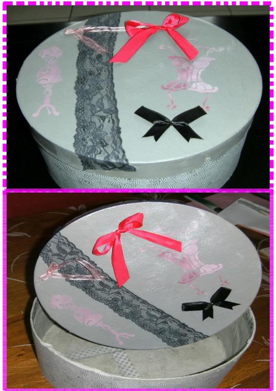 J'ai également décoré sur la demande de ma belle soeur une boîte à chapeau servant de tirelire ...
