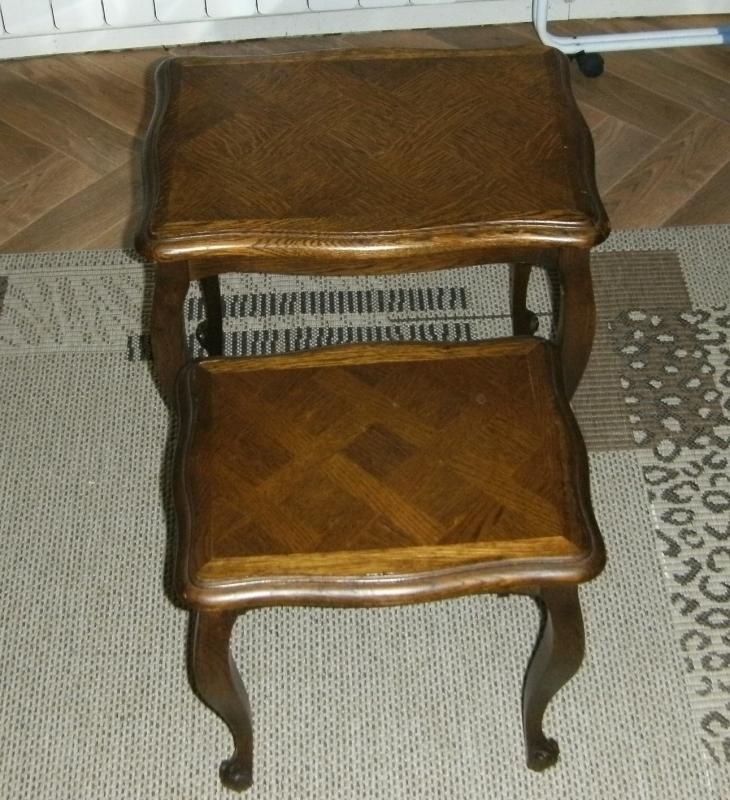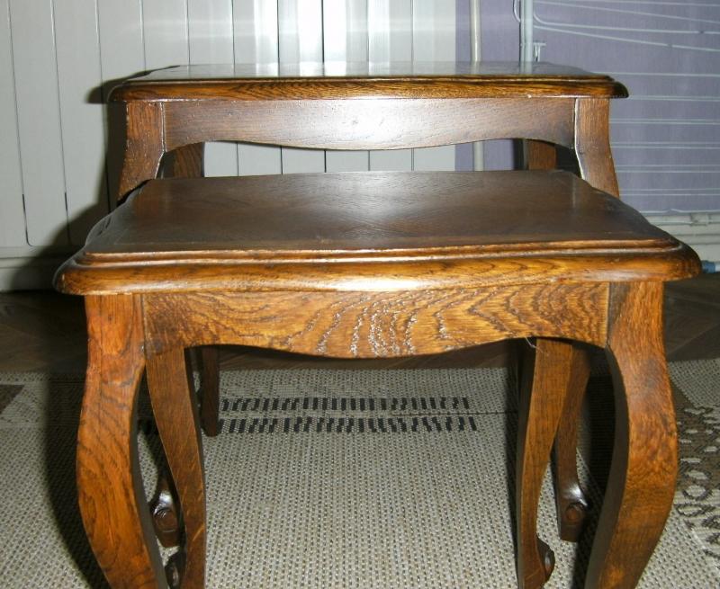 Il manquait une deuxième table de nuit et lors de ma dernière visite à Emmaüs, voici ce que j'ai trouvé: deux petites tables gigogne du même modèle !