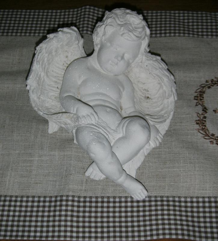 Tout d'abord ce superbe chérubin sculpté par mon amie d'enfance, restauratrice de tableaux et peintre, qui me l'a offert vendredi soir. Un travail magnifique ! Samedi je suis allée faire des emplettes dans un petit magasin/brocante qui se trouve dans un petit village dans une ancienne grange près de chez nous: 'La Maison de Camille'.