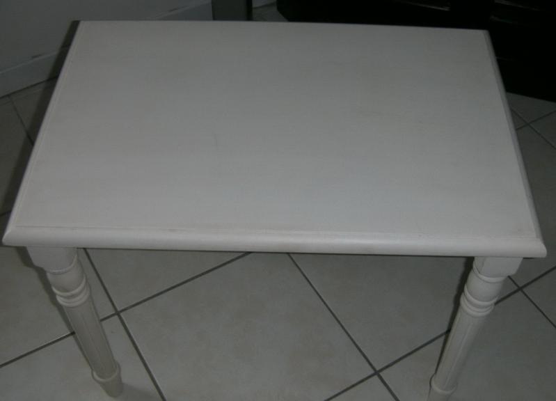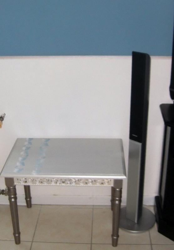 Et bien voilà ce qu'est devenue ma table: les pieds topaze, le plateau blanc nacré et les moulures avec des reflets 'palladium'.