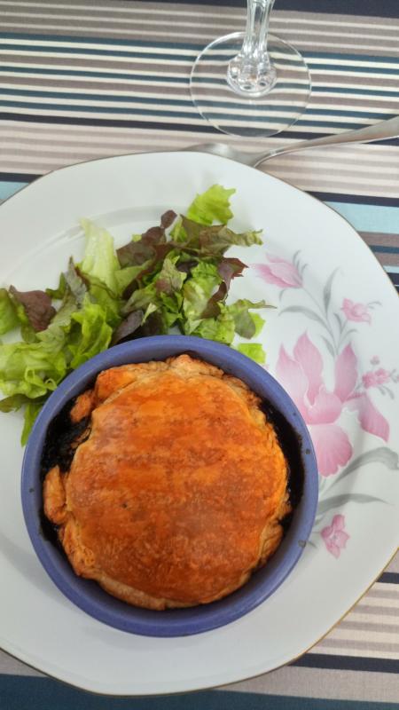 et aussi à Chantal (entre prés et champs) ^pour cette étonnante tarte tatin magrets de canard, pommes et échalottes qui a eu un franc succès auprès de ma fille et mon gendre - bon la présentation n était pas aussi belle que la sienne mais qu importe le gôut était là