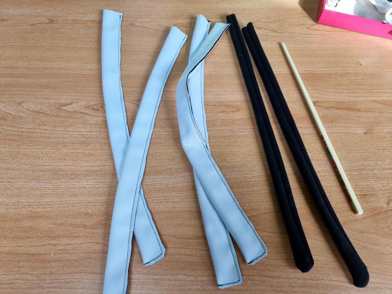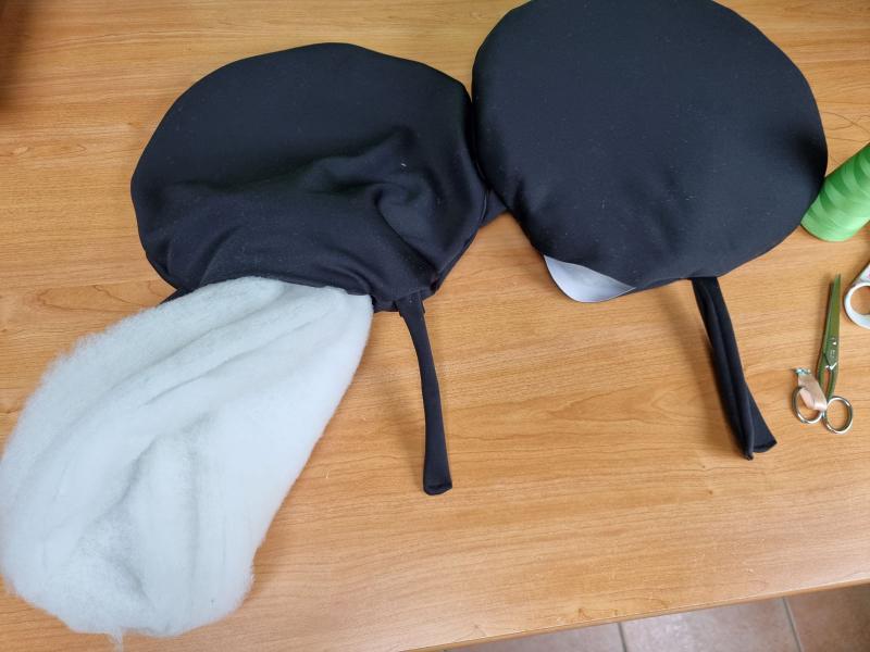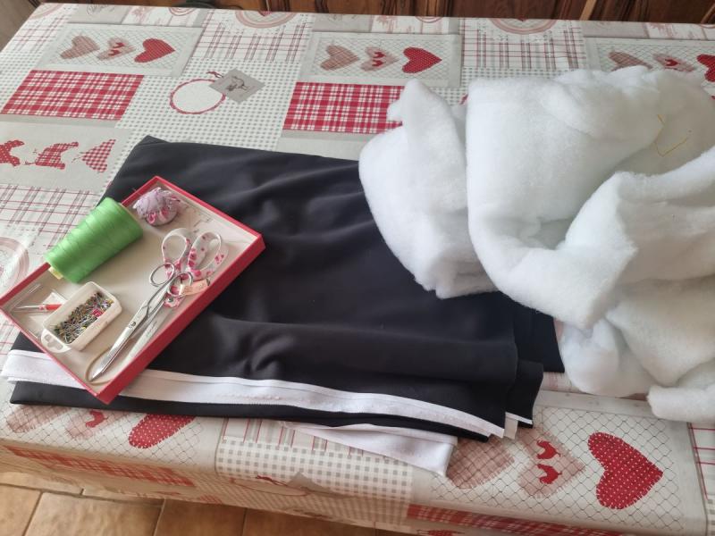 Les fournitures: -il me restait du tissus épais une face noire et une face blanche -dans mes tiroirs j'ai aussi trouvé de la buttinette, un genre ouate de rembourrage