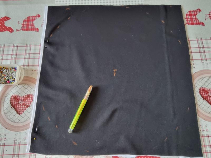 -il me restait du tissus épais une face noire et une face blanche -dans mes tiroirs j'ai aussi trouvé de la buttinette, un genre ouate de rembourrage