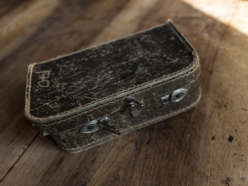 J'ai trouvé ça, au fond du grenier !!!! Elle n'est pas d'aujourd'hui, cette valisette en carton.... Cabossée, gribouillée.... Un trésor?????????