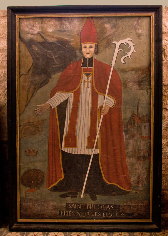 Il ne fait pas vraiment partie de ma culture, hormis le souvenir de la légende et de la chanson...... "ils étaient trois petits enfants".... Cependant, j'ai rencontré le bon patron des écoliers, dans une vieille église jurassienne.... Bonne fête !