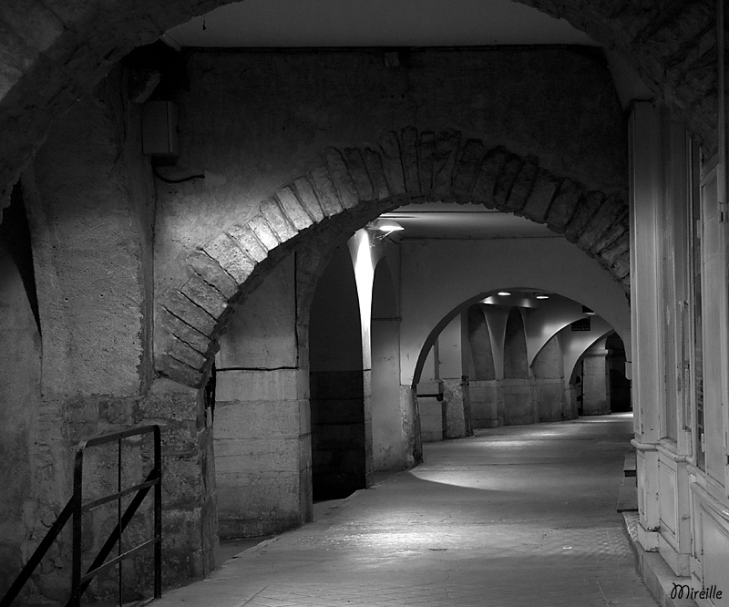 Je ne vais pas trainer dans ces rues désertes..... Les vieilles arcades dessinent des ombres inquiétantes. (Ouf, je ne suis pas seule, heureusement !)