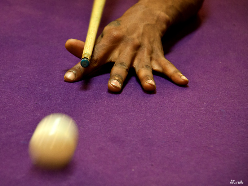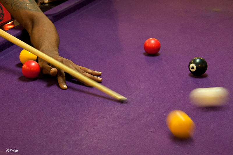 Les joueurs de billard nous laissent faire eux aussi. Là, il faut capter le mouvement des billes.....