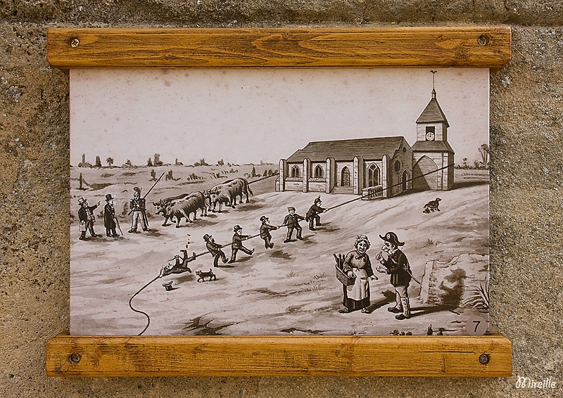 La réponse: A Saint-Saulge, dans le Nivernais, courent de ruelles en porches et de maisons en chateaux de multiples légendes, dont celle de la vache d'Etienne.... Pour en savoir plus, CLIC ! Avec toutes vos réponses riches de trouvailles contenues dans vos commentaires, je vais peut-être bien récrire la légende de la vache de SAINT SAULGE! Merci d'avoir laissé jouer votre imagination! Un petit clic pour agrandir l'image et lire!